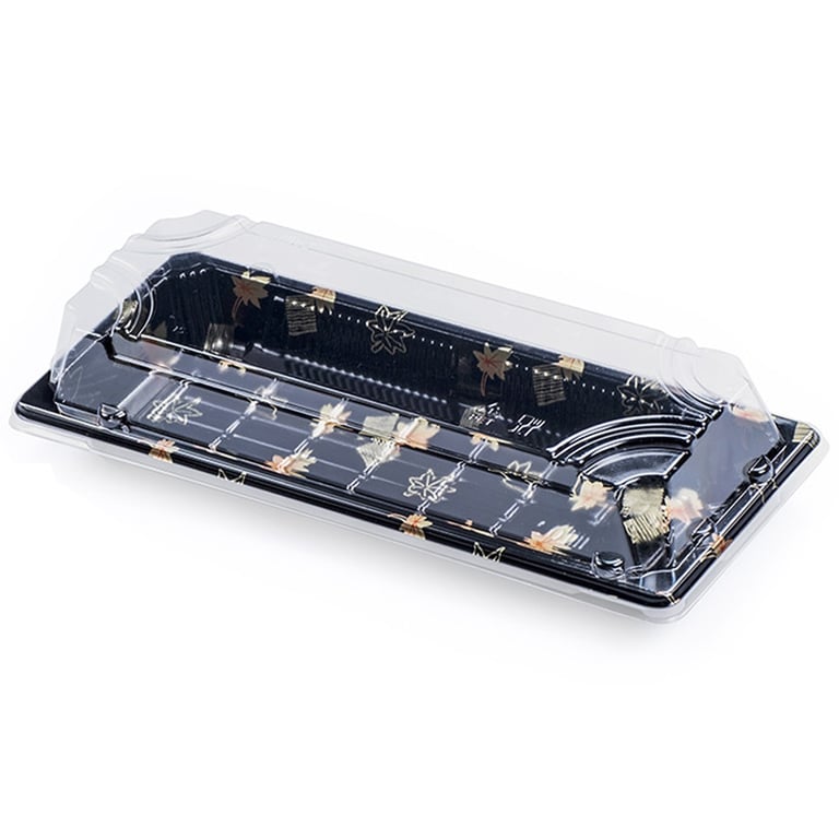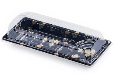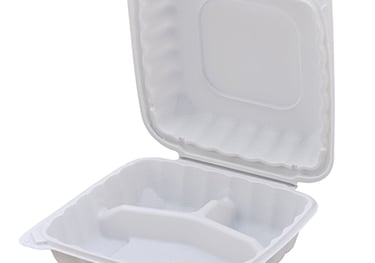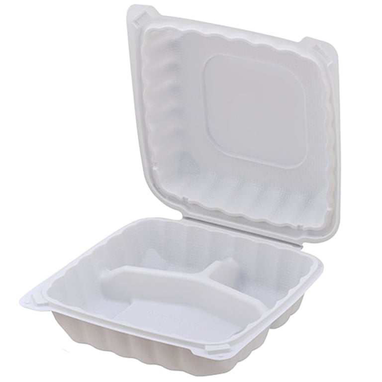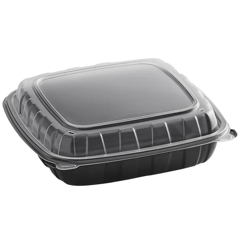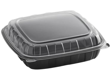 HINGED LID TO-GO CONTAINER (SHALLOW, 1 or 3 COMPARTMENT, BLACK & WHITE
